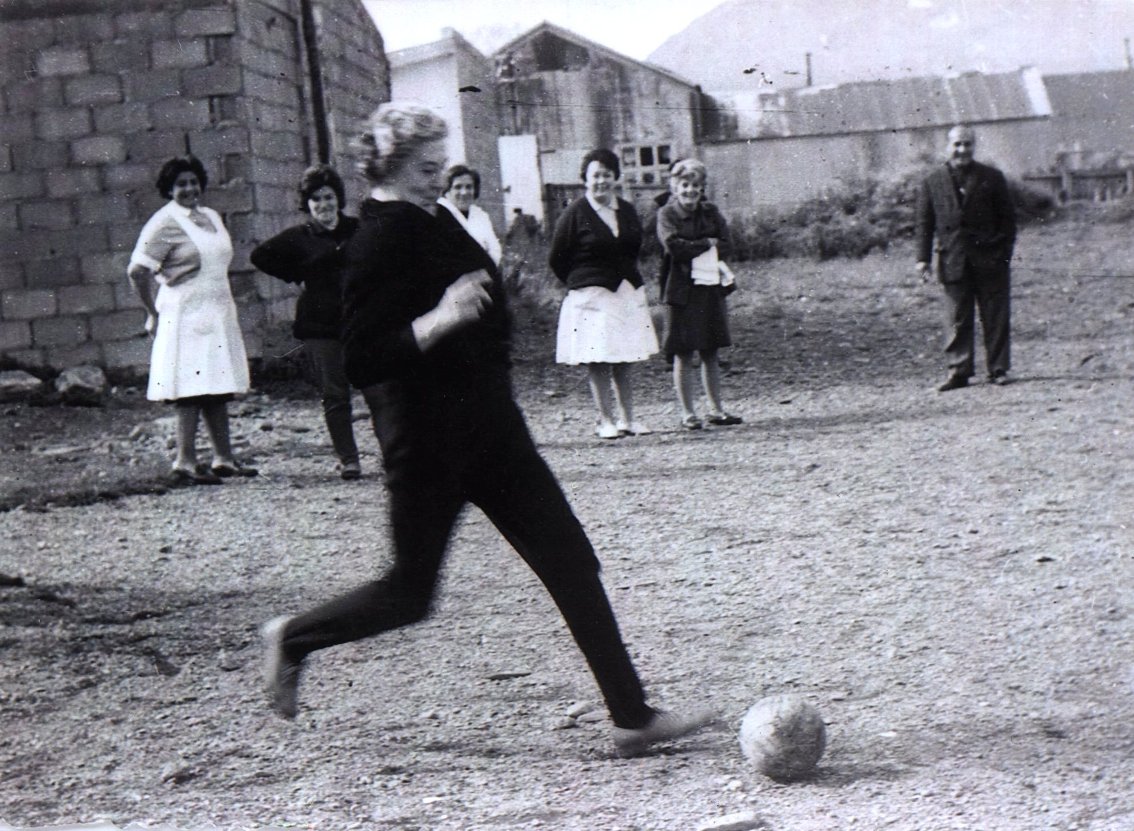 En 1969, Catalina se jubila como Sub-Caba Enfermera del hospital. Las de abajo son las últimas fotos con sus compañeros de trabajo, alguna celebración en la que Catalina se lució jugando al fútbol.